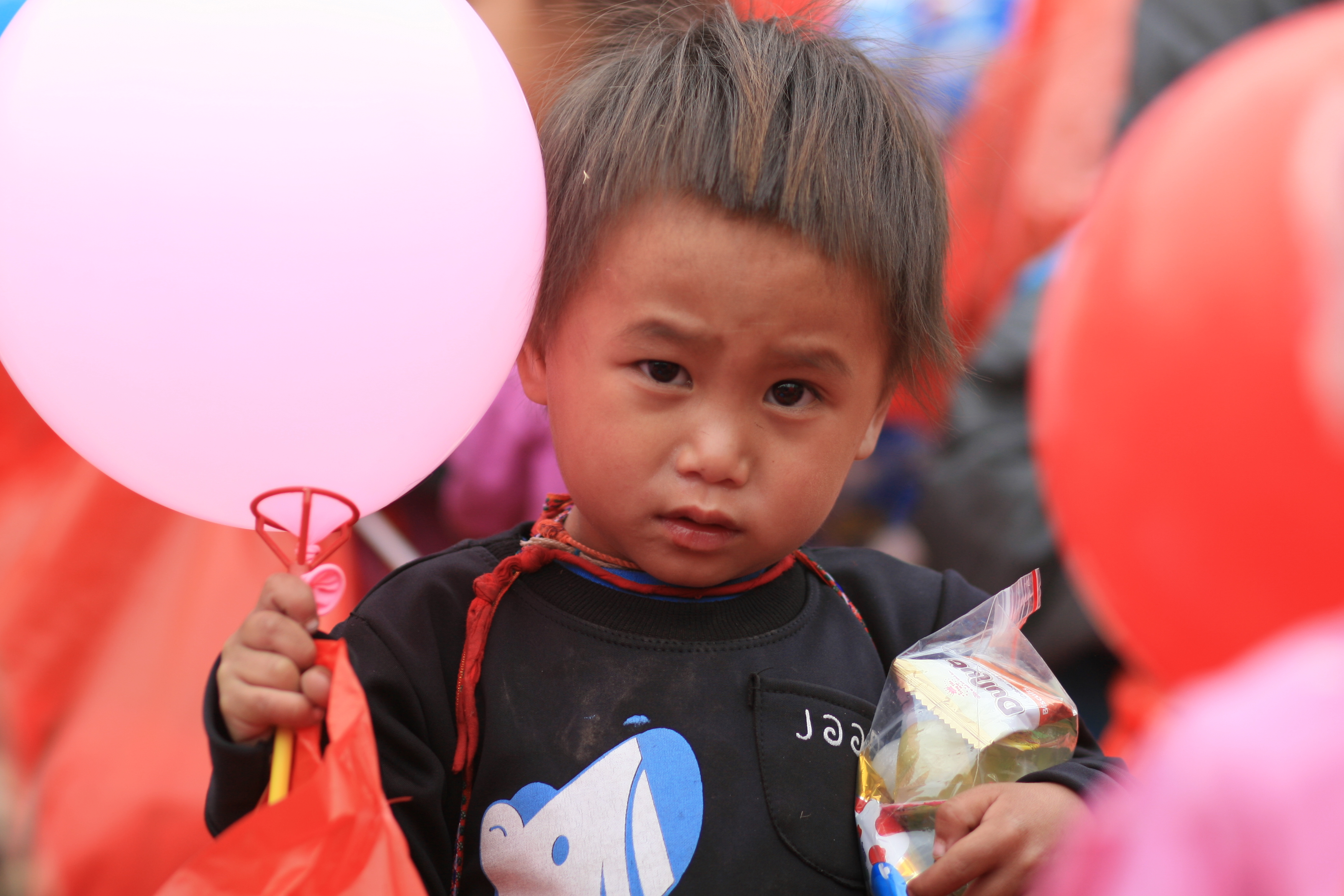 Sau hơn 2 giờ vượt 20km đường đất, chúng tôi đã đến với bản Tra, là nơi các bé mầm non và tiểu học đang chờ đoàn. Hôm nay là thứ 7, các bé được nghỉ, chỉ vì đón đoàn mà bố mẹ phải cho đến trường. Lúc này đã gần 1h chiều, chúng tôi lao vào chuẩn bị túi quà, thổi bóng bay phát cho từng bé. Các bé ở vùng cao rất thích bóng bay, còn thích hơn cả được ăn bánh kẹo. Không cần phải nói nhiều về sự khó khăn của các bé ở vùng núi cao heo hút này, bởi rất nhiều trong chúng ta cũng đã có dịp đi từ thiện ở những nơi tương tự. Những đôi chân trần tím tái, mái tóc lơ thơ, khuôn mặt nhem nhuốc, nứt nẻ, ánh mắt ngơ ngác và trang phục mỏng manh, nhàu nhĩ trong cái giá lạnh tê tái của mùa đông luôn khiến chúng ta phải nghẹn ngào.
